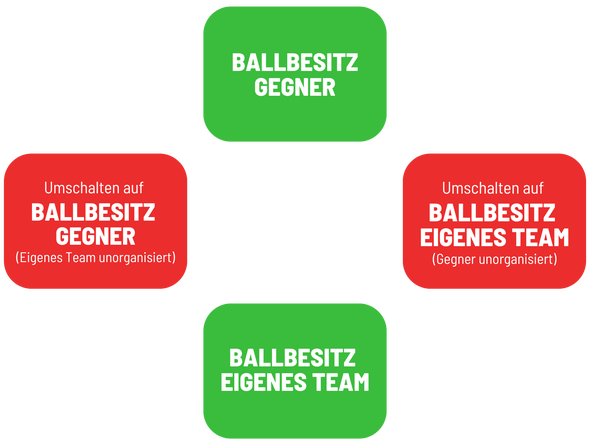 Mit jeder Sekunde, die vergeht, formiert sich der Gegner besser in der offensiven Ordnung, und ein Ballgewinn wird schwieriger. Deshalb nutzen Trainer wie Pep Guardiola die 5-Sekunden-Regel: Gelingt die Rückeroberung innerhalb dieser Zeit, bleibt das Team im Angriff. Schlägt sie fehl, zieht es sich geordnet in die Defensive zurück.